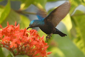 হামিং বার্ডের মতো এরাও বাতাসে স্থির থেকে উড়তে পারে। বাতাসে ঢেউ খেলিয়ে আলোর ঝিলিকের মতো এগাছে-ওগাছে, এ ফুল থেকে ও ফুলে উড়ে উড়ে মধু পান করে। খুব চঞ্চল। ফুলের বোঁটার ওপর বসে বাদুড়ের মতো ঝুলে পড়ে মধু পান করে। সচরাচর একাকি বা জোড়ায় অথবা অন্য পাখি যেমন ফুলঝুরি, ফিঙে, পাতা বুলবুলি, বুলবুলি বা চটকের সাথে দলে দলে ঘুরে বেড়ায়। মূলত মধু পান করে তবে সঙ্গে কিছু পোকামাকড়ও খায়। আর যখন মধুর অভাব দেখা দেয় তখন পুরোপুরি পোকামাকড় খেয়ে জীবনধারণ করতে পারে।