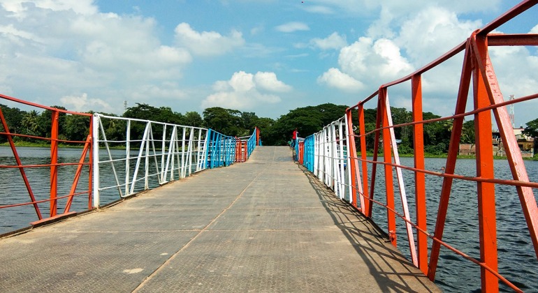 যশোরের মণিরামপুরের ঝাঁপা বাওড়ের উপর প্রায় ১৩০০ ফুট দীর্ঘ একটি ভাসমান সেতু (Floating Bridge) নির্মাণ করা হয়েছে। এই ভাসমান সেতু নির্মাণের ফলে কপোতাক্ষ নদ এবং ঝাঁপা বাঁওড়ে ঘেরা মণিরামপুর উপজেলার ঝাঁপা গ্রামের বাসিন্দাদের দুর্ভোগের কিছুটা অবসান ঘটলো। অথচ কিছুদিন আগেও নৌকা ছাড়া এখানকার মানুষের চলাচল করতে প্রায় ১০ কিলোমিটার জায়গা ঘুরে যেতে হত। চলাচলের সমস্যা দূর করতে শুরুতে এখানে ‘ঝাঁপা গ্রাম উন্নয়ন ফাউন্ডেশন’ নামে একটি সংগঠন তৈরী করা হয়।